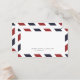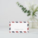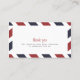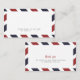 Vintage inspired airmail escort/placecard design. Fun for a destination, vintage themed event. Red and Navy Stripe background continues on reverse for added pop of color (include a small thank you note or other text of your choice).