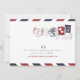 A love letter inspired wedding invitation that's perfect for a casual couple who would like to write their guests a little personalized note, rather than a formally worded invitation! Shown in classic red and navy with handwritten inspired cursive fonts. Backside includes room for additional text, or a website address. PLEASE NOTE: The faux postage stamp graphics on this design are for decorative purposes only, and are not USPS compliant postage. This invitation card must be mailed within an envelope (with paid postage), and would not be functional as a self-mailing postcard.