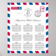 Airmail design with red and blue strips and stamps with wedding rings and "LOVE". Customize each line of text with your wedding guest's names. I have set this up for 9 tables but if you by chance need help with a different layout please email paula@labellarue.com BEFORE YOU START TO CUSTOMIZE OR PLACE AN ORDER so I can create a new Poster for you.