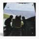 Airmen push out a pallet of donated goods 3 ring binder