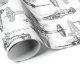 Black and grey airplane line drawings, overlapping and from various angles, on a white background. A perfect gift wrapping paper for Father's Day, or other special occasions.