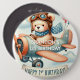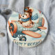 Celebrate your little one's special day with this charming watercolor teddy bear 1st birthday design button! Featuring a cute, hand-painted teddy bear plying cute airplane in soft pastel colors, this sweet and whimsical artwork is perfect for birthday favors. Ideal for a baby boy's first birthday celebration, this adorable bear theme adds a touch of warmth and joy to your party. Customize it easily on Zazzle for a unique and memorable event!