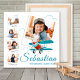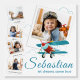 Personalized airplane boy photo collage featuring a child as a young pilot. This personalized photo collage works perfectly as nursery wall decor boy and adventurous kids room decor. Designed as a playful children photo collage, it makes a great birthday photo collage, creative gift for boys, and fun aviation wall art. Custom name photo collage for future pilots.