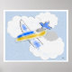 what little boy wouldn't love this on his wall !! this animated jet airplane flying thru the fluffy white clouds will most certainly come to life on any wall!! white background for matting and framing.