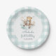 Airplane Teddy Bear Pastel Gingham 1st Birthday Paper Plates