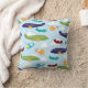 This cute throw pillow is perfect for your little aviator. It features vintage style fighter planes, helicopters and passenger jets. The background is a soft blue sky with clouds. This pillow is perfect for an aviation theme nursery or boy's room.