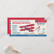 Fly on over! Invite everyone to the greatest birthday party with a boarding pass ticket invitation template. This flight ticket birthday invitation features red and blue classic style ticket with a vintage biplane, and world map background on a classic flight ticket design.