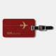 The front side of the tag features a simple and graphic image of a cream plane soaring against the dark red background, capturing the spirit of adventure and wanderlust. To make it uniquely yours, we offer customization options with your initials and full name elegantly displayed in a timeless serif font. This personal touch not only adds a distinctive flair to your luggage but also makes it easy to identify in a sea of bags.