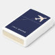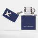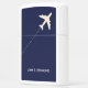 White airplane with dotted line on a dark blue background, personalized with your own name