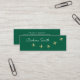 An elegant and minimalist businesscard for a travel agent... with script name and small faux gold (ocher color) airplanes flying... printed on a green background color.
