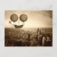 A Steampunk dual balloon airship drifts over the heart of Chicago. Sepia toned