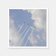 A squadron of military jets performs their maneuvers among the cumulus clouds above a summer air show.
