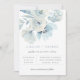 Beautiful airy pastel blue watercolor floral arrangement, wedding invitation. Modern and chic grey and blue typography design. Back of card features solid color shown in pastel blue, which can be customized.