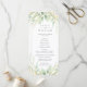 Our garden chic wedding program features your ceremony details in elegant gray lettering, framed at the top and bottom by pastel green foliage and leaves. Reverse side lists the members of your wedding party with easily editable text fields. Coordinates with our Airy Botanical wedding invitation collection for summer, spring, outdoor or garden weddings. Use the template fields to add your ceremony and bridal party information, and then click "Customize It" to reposition elements if needed. Need help? Contact me via the "Ask this Designer" link on this page.