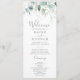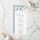 This airy greenery and gold leaf wedding program is perfect for a modern wedding. The elegant botanical design features light and airy watercolor eucalyptus accented with whimsical gold glitter leaves. Include the name of the bride and groom, the wedding date and location, thank you message, order of service, bridal party and an optional "in loving memory" memorial.