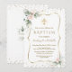 Airy Greenery Flowers Gold Cross Twins Baptism Invitation