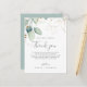 This airy greenery and gold leaf thank you reception card is perfect for a modern wedding. The elegant botanical design features light and airy watercolor eucalyptus accented with whimsical gold glitter leaves. Place these cards at the table setting for each of your guests at your wedding reception. Personalize the card with your names and a special thank you message.