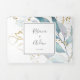 This airy greenery leaf back wedding all in one tri-fold invitation is perfect for a modern wedding. The elegant botanical design features light and airy watercolor eucalyptus accented with whimsical gold glitter leaves. Your entire wedding suite all in one! This folded invitation includes your wedding invitation, details, and a self addressed RSVP card that your guests cut off and mail back to you. Personalize the front cover with your names and wedding date.