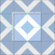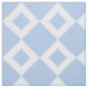 A cool geometric pattern of interlocking light blue and white diamond shapes. The white diamonds each contain a small baby blue diamond making pale blue the dominant color of the fabric design.