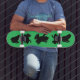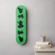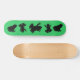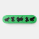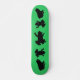 Fun artistic frog silhouettes skateboard. 5 frogs hopping on this blue green skateboard. Fun and original gift idea.