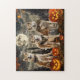 Unleash the spooky spirit with this eerie Halloween design featuring a pack of dogs under a dark, moonlit sky, surrounded by flying bats and glowing pumpkins. Perfect for those who love a touch of frightful fun with their furry friends!