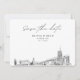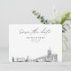 Modern Akron black and white save the date invitation. The front showcases a stunning sketch, setting the perfect tone for your wedding day. Add your own photo to the back and customize the text to make it your own. Enter the Zazzle design tool for additional design customizations.