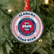 Show your state pride this holiday season with this unique Christmas ornament dedicated to Alabama, the 22nd state. It has red, white, and blue patriotic colors with a circular typography design on a white background. The text includes facts about the state, such as its name, capital, state abbreviation, region, time zone, geographic coordinates, the year of its statehood, and its resident's name. It's a great gift for those who wish to celebrate their state or for those who are feeling nostalgic about their home state.