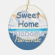 Lightweight, smooth, pure white ornament with nice sheen. Perfect size to be seen from across the room ... and to attract closer inspection! Price was great for ordering enough for the whole family! Clear, bold black design just as requested. Matches the order exactly. Just so nice!