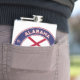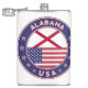Badge of Alabama with flag of Alabama and flag of USA colors, rounded shape.