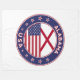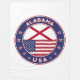 Badge of Alabama with flag of Alabama and flag of USA colors, rounded shape.
