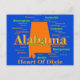 Colorful Alabama state pride image including map silhouette with cities, towns and nickname.
