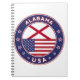 Badge of Alabama with flag of Alabama and flag of USA colors, rounded shape.