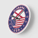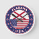 Badge of Alabama with flag of Alabama and flag of USA colors, rounded shape.