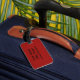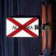 A graphic Alabama State Flag on a luggage tag. The luggage tag has the (customizable) text Alabama or the text of your choice on the front and templates for your personalization on the back.