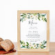 Charming wedding menu sign displays your dinner selections in chic handwritten calligraphy and modern block lettering. Adorned with watercolor botanical greenery and white flowers that match our Alabaster Floral wedding collection.