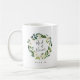 A sweet and elegant gift for your maid of honor, mug features a green and white watercolor floral wreath with "maid of honor" inscribed inside in hand lettered script. Personalize with your wedding date beneath.