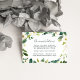 Slip these chic, petite cards into your wedding invitations to let out of town guests know of any hotel arrangements or group codes. Designed to coordinate with our Alabaster wedding collection, cards feature off-black lettering with a botanical and floral border in watercolor shades of green and white.