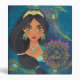 This stunning character art of Jasmine is adorned by golden peacock feathers and a lotus flower badge that reads "Be Heard".