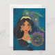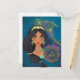 This stunning character art of Jasmine is adorned by golden peacock feathers and a lotus flower badge that reads "Be Heard".