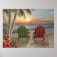 This is a peaceful relaxful scene. I enjoy the beach, usually I love one chair for me, but this time I'll let someone join me. The printing is gorgeous. Red and green chairs, my two fav colors. The sunset is tremendous.