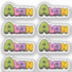 The name Alan in colourful bubblegum lettering. The colours can be changed.