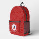 Personalized backpack showing the Ålander LOVE FLAG. The word LOVE is featured in red letters inside a white, fractal circle of squiggly squares. The circle sits on a red, fractal background, also, of squiggly squares. Perfect gift for Valentine's Day or any special time. Can be customized for any holiday and personalized with any name.