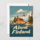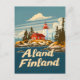 A charming and nostalgic depiction of the Åland Islands, an archipelago in the Baltic Sea between Sweden and Finland. The design features the islands' scenic landscapes with rocky shores, tranquil waters, and traditional red wooden houses. Rendered in a vintage style, the artwork captures the serene beauty and unique cultural heritage of the Åland Islands, inviting viewers to explore their peaceful charm and maritime allure.