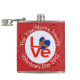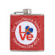 Another LOVE FLAG from Auntie Shoe. This one of the Åland Islands. The word LOVE shows in red letters inside a white, fractal circle of squiggly squares. The circle sits on a red, fractal background, also, of squiggly squares. Hip flask is perfect for Valentine's Day or any special occasion.