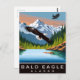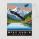 Bald eagle is flying over the river, with mountains behind. Wildlife in Alaska, travel postcard in vibrant colors.