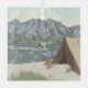 Bush Plane landing in a lake at the base of the mountains with a retro tan canvas tent. Great gift for the new pilot or future pilot or anyone that loves Flying and Seaplanes, Fishing, Mountains, Campling and Adventures. Would make a great Alaska souvenir.