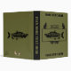 Based on a common military award the Combat Fisherman Badge commemorates surviving combat fishing in Alaska. It features a Sockeye Salmon, in spawning red coloration, on a dark blue background, over a conifer branch wreath. Text reading "ALASKA" is located at the top of the image. There are two places on the front for you to customize by adding your own additional text and another on the spine.