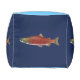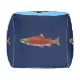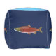 Based on a common military award the Combat Fisherman Badge commemorates surviving combat fishing in Alaska. It features a Sockeye Salmon, in spawning red coloration, on a dark blue background, over a conifer branch wreath. Text reading "ALASKA" is located at the top of the image. Add your own additional text. More salmon swim around the sides. Salmon fishing is extremely popular in Alaska, too popular. Thousands of anglers, almost shoulder to shoulder, line both banks of salmon streams, each trying to catch a big fish while trying to keep his line from tangling with those of everyone else. Tempers can flare. This is called combat fishing.