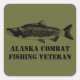 A black line drawing of a Sockeye Salmon (Oncorhynchus nerka) with customizable text reading "Alaska Combat Fishing Veteran." Fishing for salmon in Alaska is very popular, too popular in. Imagine thousands of anglers, just about shoulder to shoulder, lining both banks of a stream trying to avoiding crossing lines with everyone else, in hopes of landing a big salmon. Alaskans call that combat fishing. Display your veteran status.