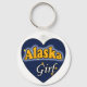 Leuke sleutelhanger met een hart afgebeeld met de Alaska vlag erop. Op de tekst staat: Alaska girl De achtergrond is in de kleur wit. Leuk om te geven als cadeau of voor jezelf om te laten zien dat je trots bent om uit Alaska te komen,
